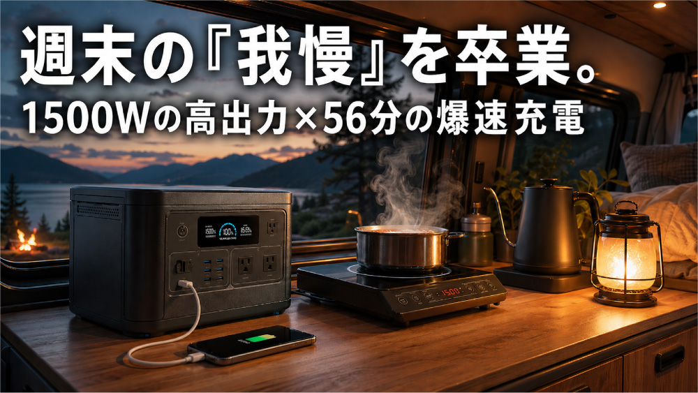 結論として、1000Wh級のスタミナと1500Wの高出力、そして爆速の充電性能を備えた電源を導入し、メインの熱源を「電化」することが、車内での安全と快適を両立させる最も論理的な解決策です。 ※カセットコンロ等の火気を使用する場合は、窓を開けるなどの「換気の徹底」と「就寝前の完全消火」を必ず守りましょう。