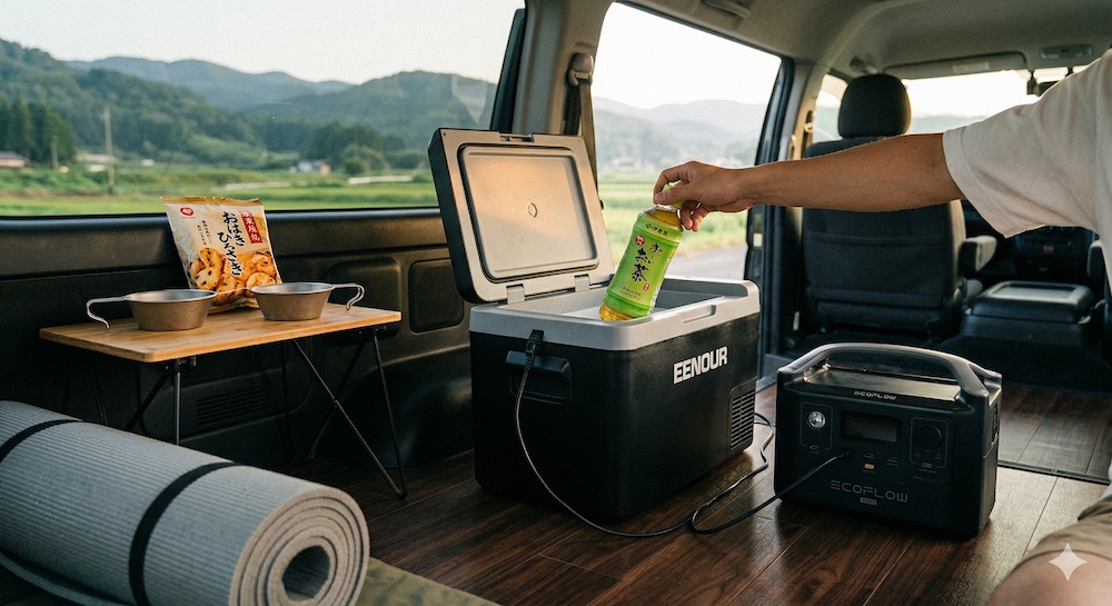 ポータブル冷蔵庫があるだけで、車中泊は「不便を楽しむ修行」から「快適な移動空間」へと劇的に進化します。