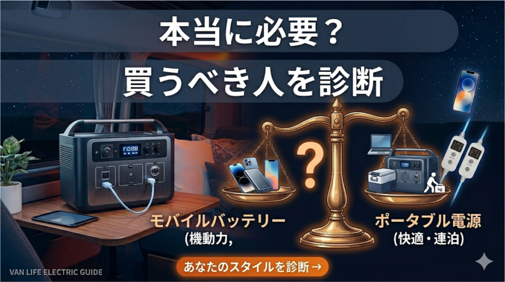 この記事では、今のあなたの旅のスタイルが本当にポータブル電源を導入すべき「準備完了の状態」なのか、それとも「まだ買わなくていい段階」なのかを、現場のリアルな視点でハッキリと整理します。
