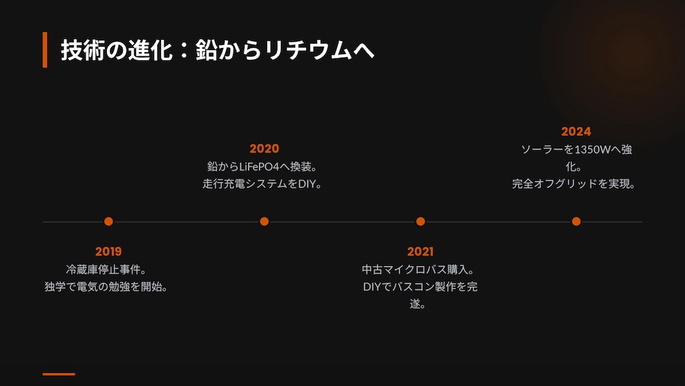 スライドショーで私の旅の概要をお伝えしましたが、なぜ私がここまで「電気」にこだわるようになったのか、もう少しだけ詳しくお話しさせてください。